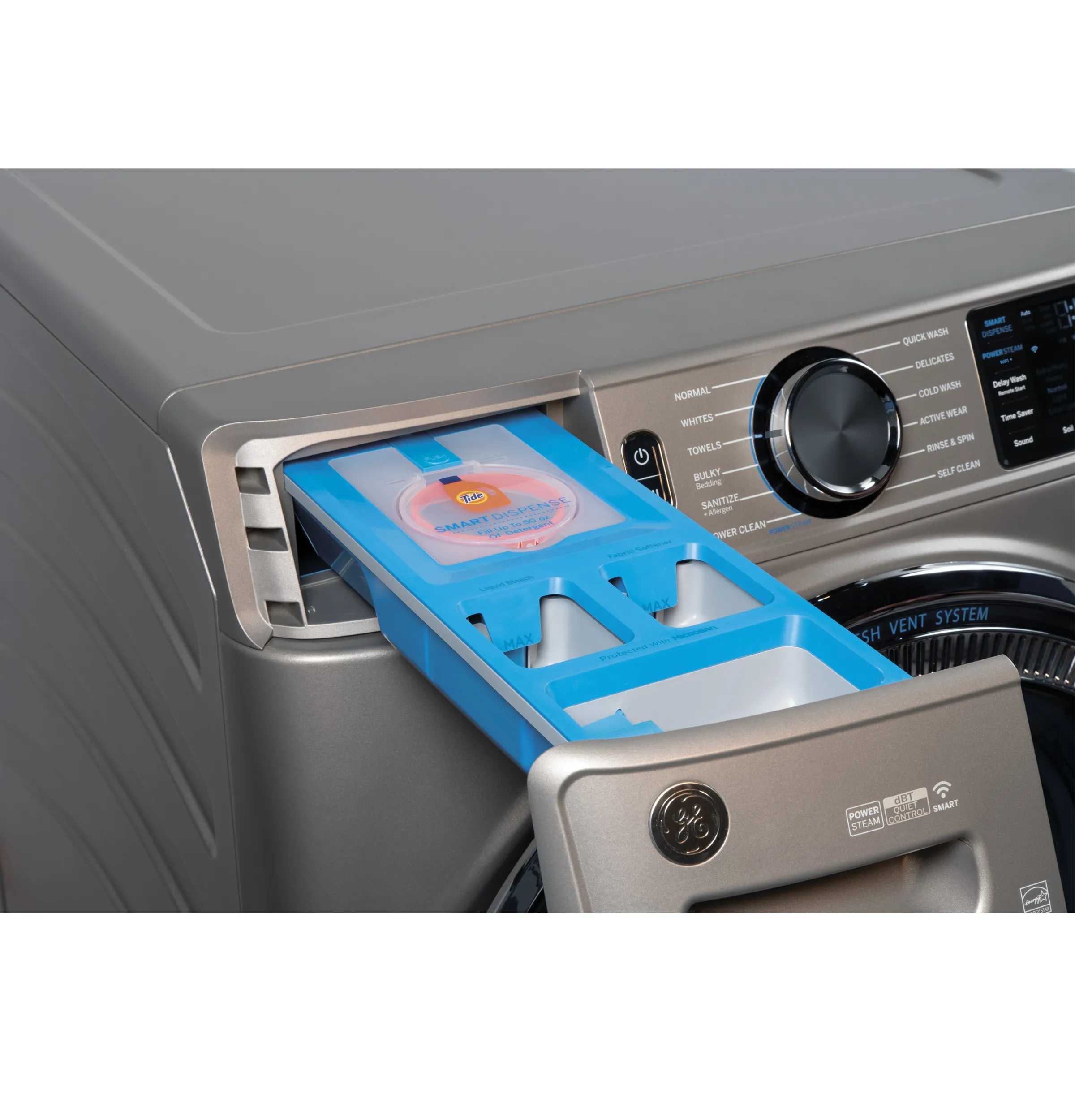 - SmartDispense™ Technology: Save time and make laundry effortless with an intelligent dispenser that holds up to 32 loads of detergent and automatically dispenses the right amount each time