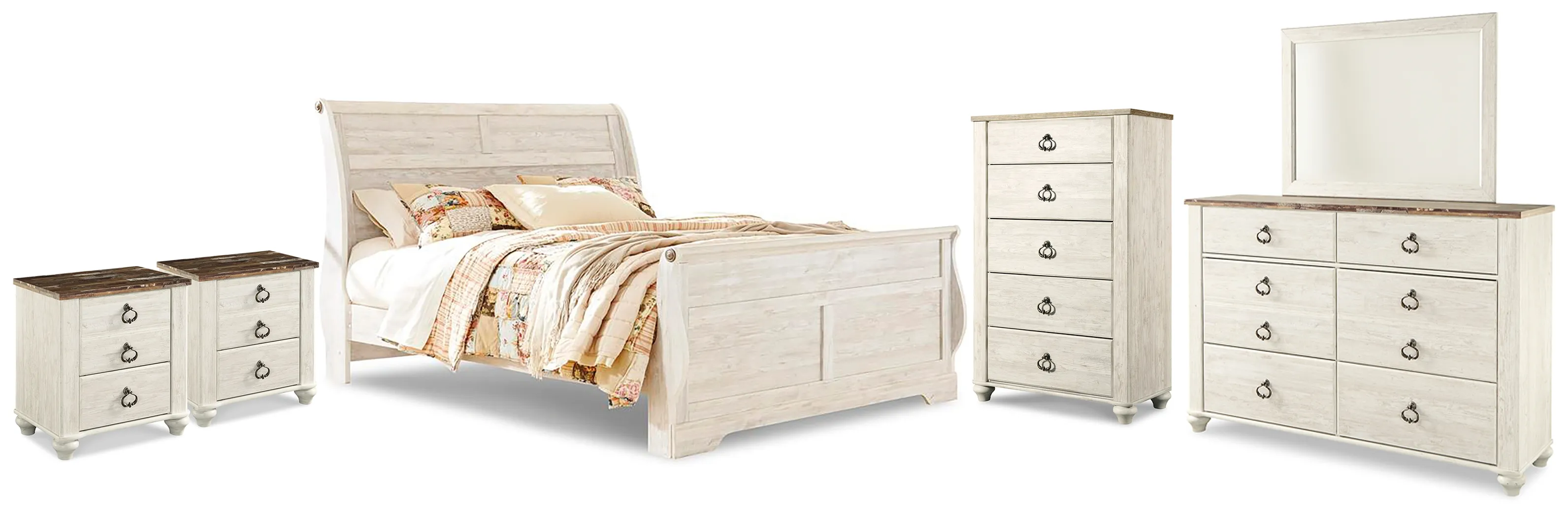 Willowton King Sleigh Bed, Dresser, Mirror, Chest and 2 Nightstands