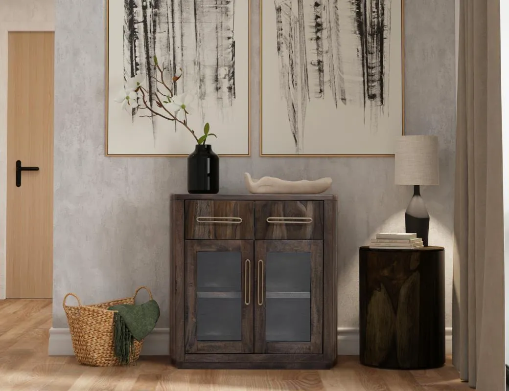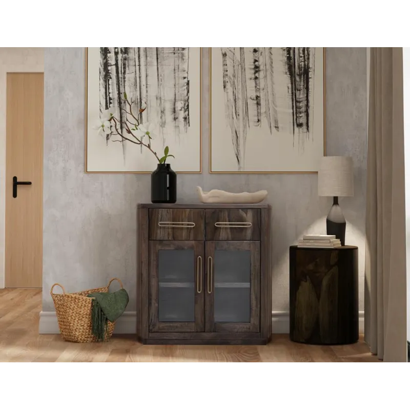 This beautiful Balam Collection, is both stylish and functional. It features two glass-paneled doors, making it perfect for showcasing your cherished items. The collection design combines modern elegance with practicality, making it a versatile addition to any room.