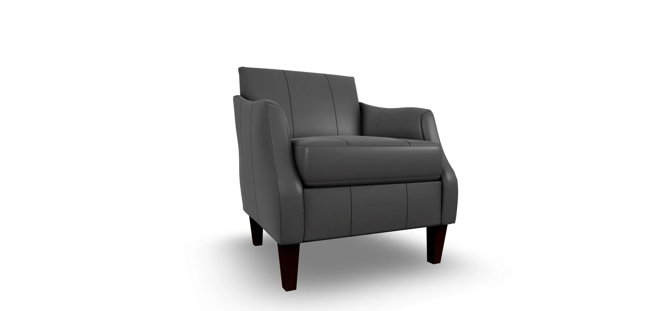 The tapered legs are availble in Dark Walnut, Espresso or Riverloom finishes. Made for you in the USA, choose from over 700 fabrics or hand selected top grain leathers.