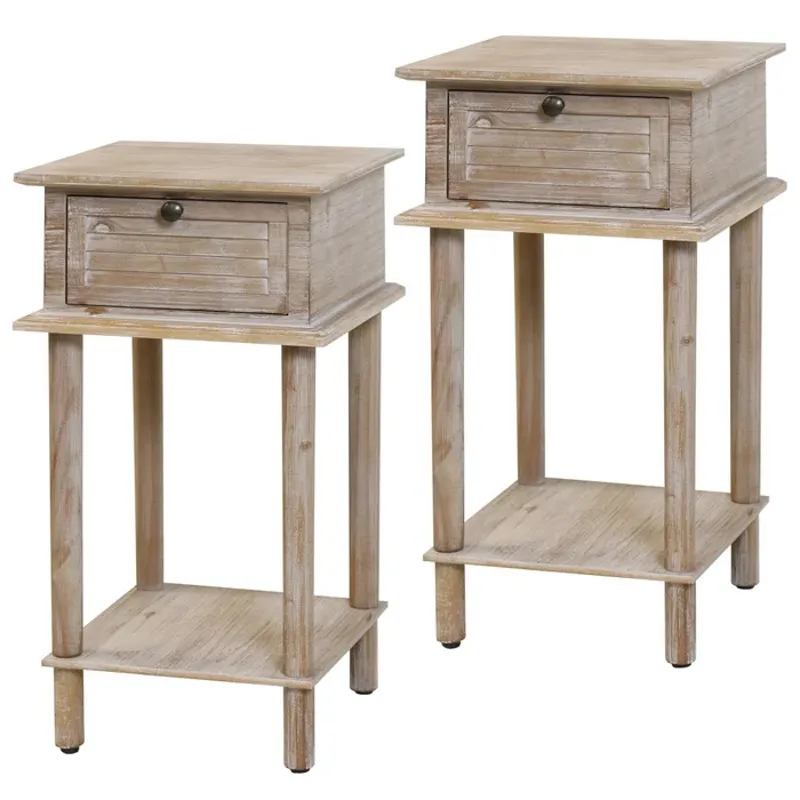 Wood Shutter Side Tables with One Drawer - Set of 2