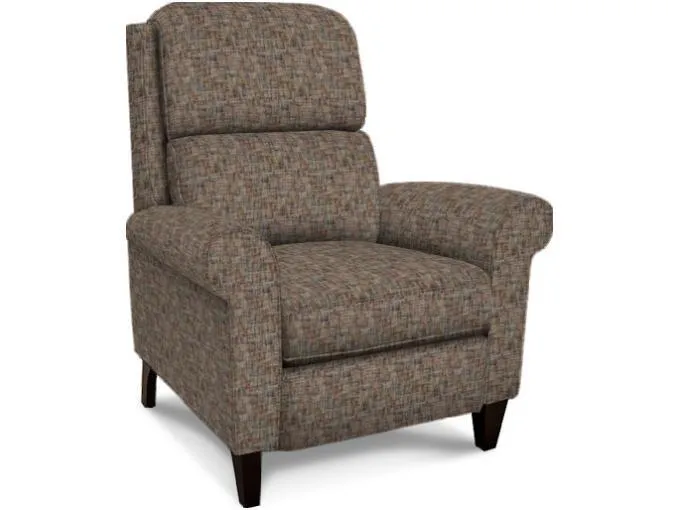 The ultimate basic, the Kenzie chair features a high back perfect for relaxing after a long day. With its pub back, tailored rolled arm and tapered wood leg, it is a perfect accent to any home. This casual press back recliner is also available with a power option. Take a look at Maddox for the all leather version!