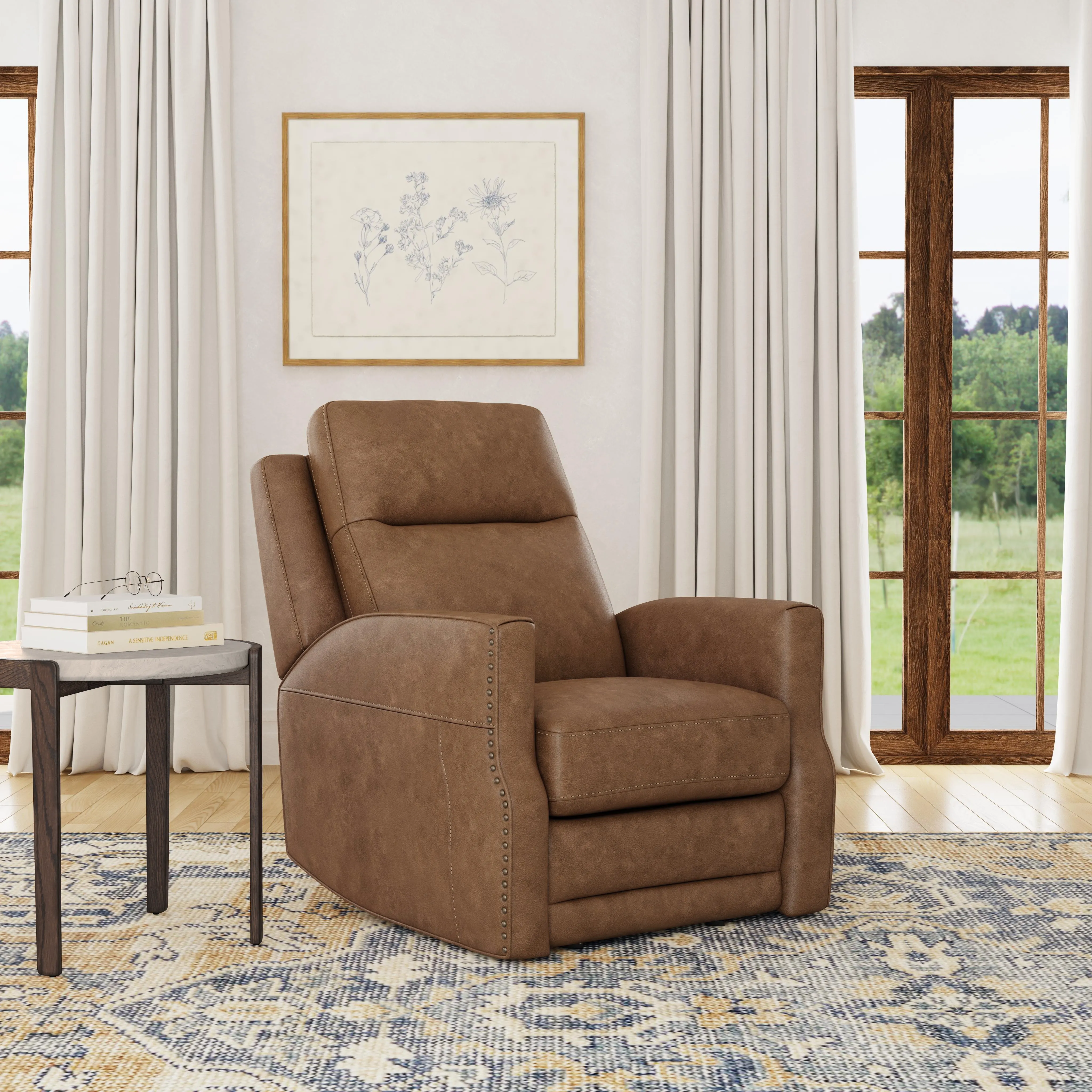 The Maxwell recliner has all the grand, noble gravitas to make a statement, complete with the cutting-edge comfort you need to relax. This traditional design brings a vintage flair along with triple-power recline for modern relaxation. The Maxwell recliner includes a power control for the headrest, lumbar, and recline as well as USB-A and USB-C ports to charge all your devices. Upholstered in rich leather options and complete with a gleaming nailhead trim, Maxwell brings all the vintage style you want together with the innovative comfort you need.