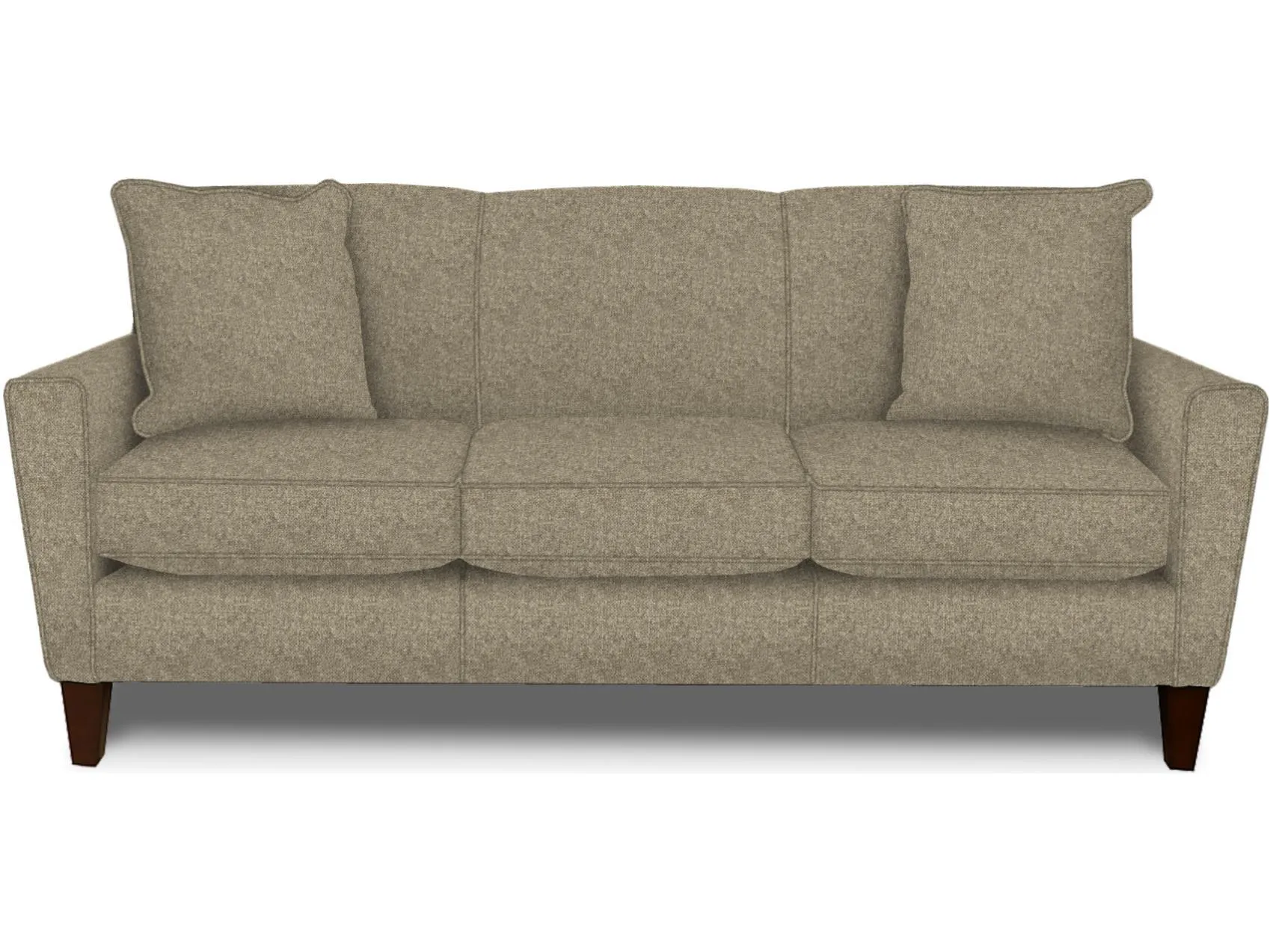 Back: Sinuous wire, attached, block foam with poly fiber wrap. Seat: Sinuous wire, block foam with poly fiber wrap, ventilated, reversible. Legs: 2.75''x6'' wood taper, screw-in. Pillows: 2 x 20'' fiber fill. Optional Upgrades: Frame Coil, Coil Cushion, feather blend pillows.