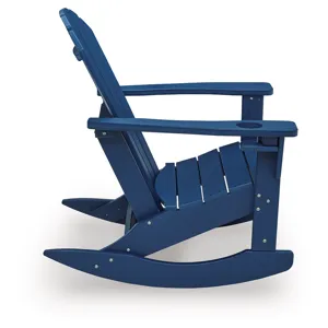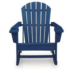 Add cottage-quaint charm to your outdoor oasis with this rocking chair in blue. Made of MEGA-TUFF® high-density polyethylene material, it’s sure to weather the seasons beautifully. Designed to shed rainwater, the chair’s slatted styling and classic Adirondack design provide exceptional form and function.